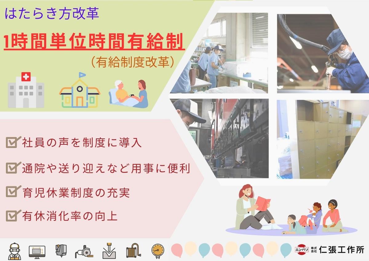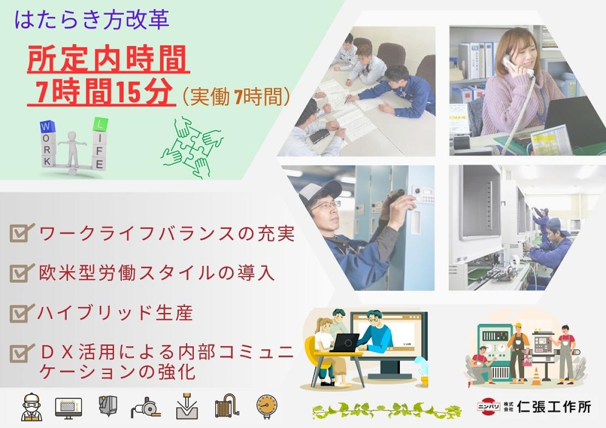 本日10月1日、仁張工作所は61周年を迎えることができました。経営理念にもある【ものづくり】・【しごとづくり】・【ひとづくり】を永続的に行っていくため、昨年作り上げた『はたらき方改革』の4本の柱に、新たに5本目の大きな柱として『定年制度の廃止』を加えることにしました。