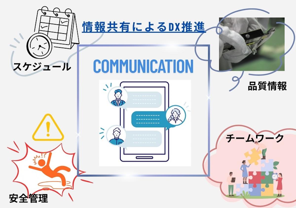『ビジネスチャットの活用』・・・製品情報や品質管理、工程進捗の見える化、さらには教育資料の配信にいたるまで、単なる情報共有に留まらないコミュニケーションツールとして活用しています。生産現場のDXにも大きくつながっており、今や仁張工作所にとってなくてはならない有効なツールとなっています。