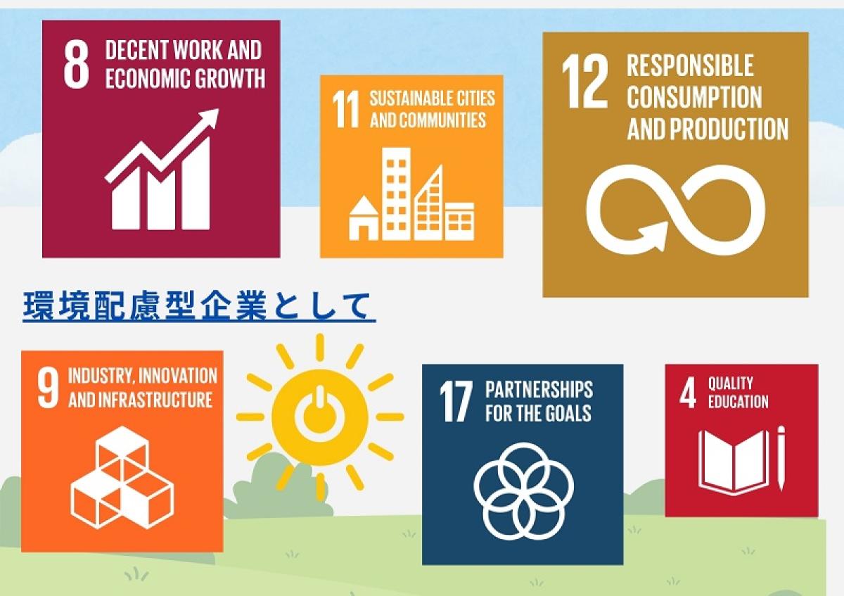 【SDGSを実践する環境経営の推進】・・・これからの社会のニーズに沿った環境経営の推進に前向きに取り組みます。法令遵守はもとより、お客様からの要求に誠実に向き合い、環境にやさしいものづくり、そして企業活動を行っていきます。